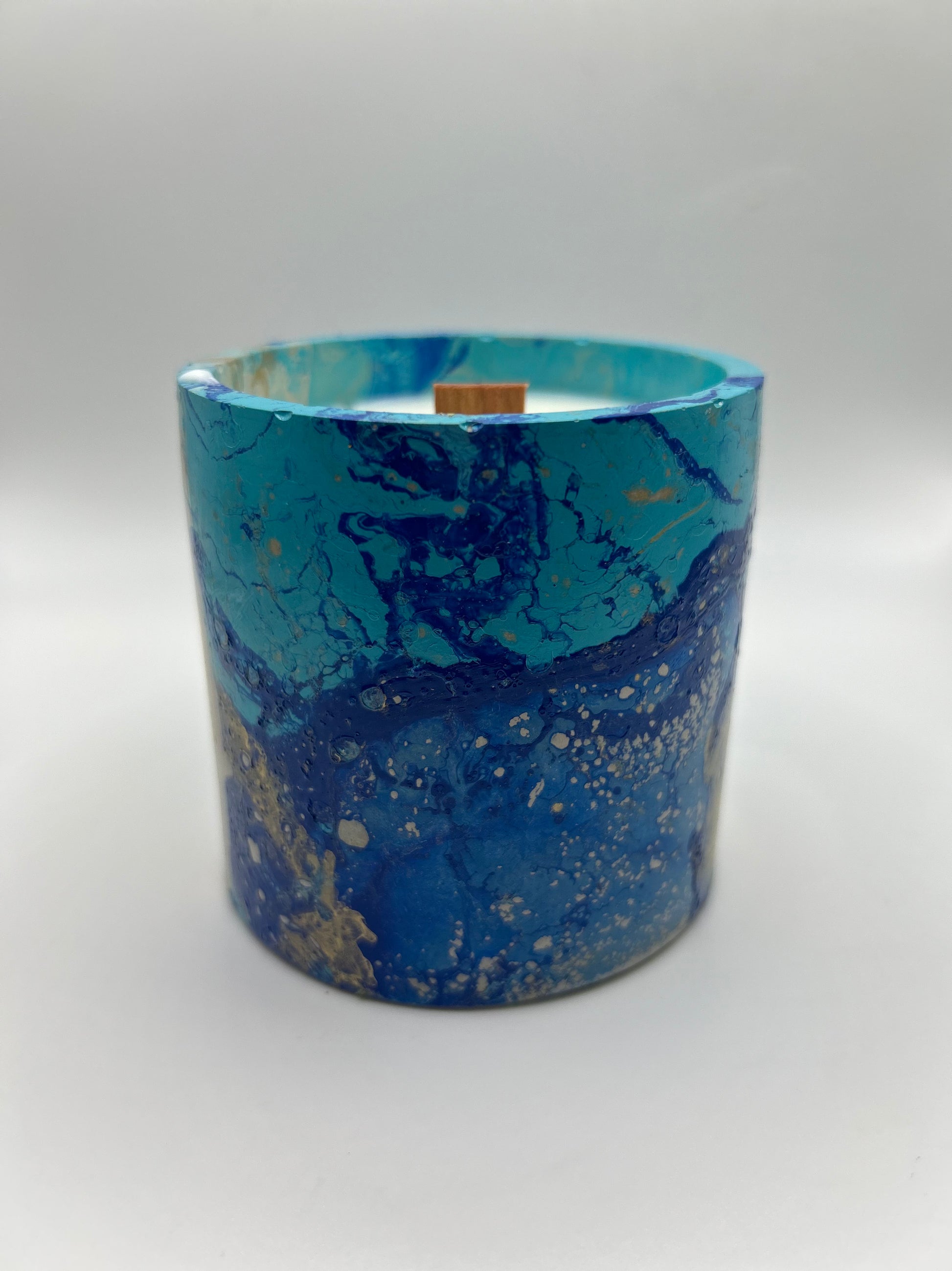 Handmade cement vessel hydro-dipped and hand poured coconut/soy wax with a premium wood wick.