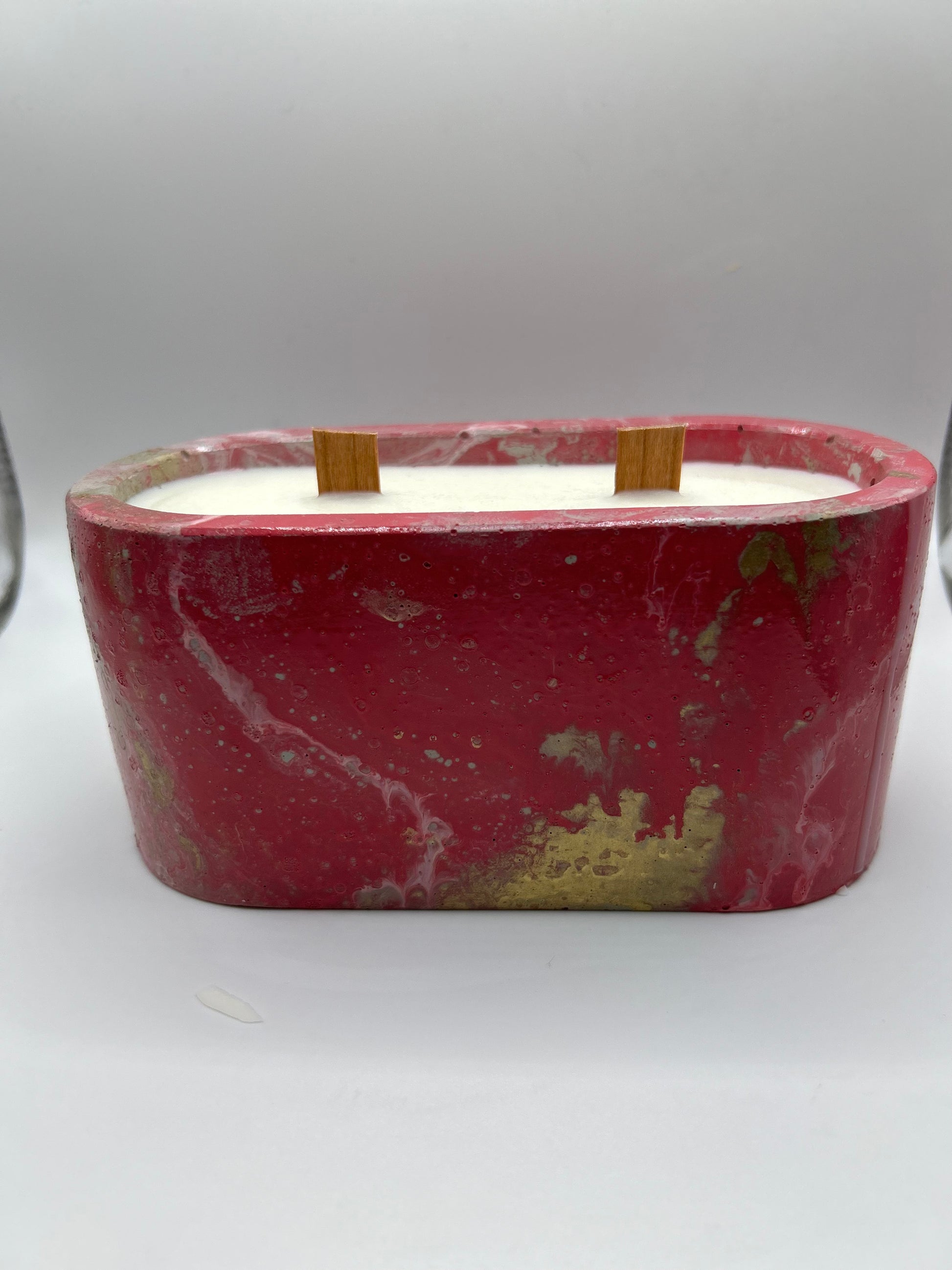 Handmade cement vessel hydro-dipped and hand poured coconut/soy wax with a premium wood wick.